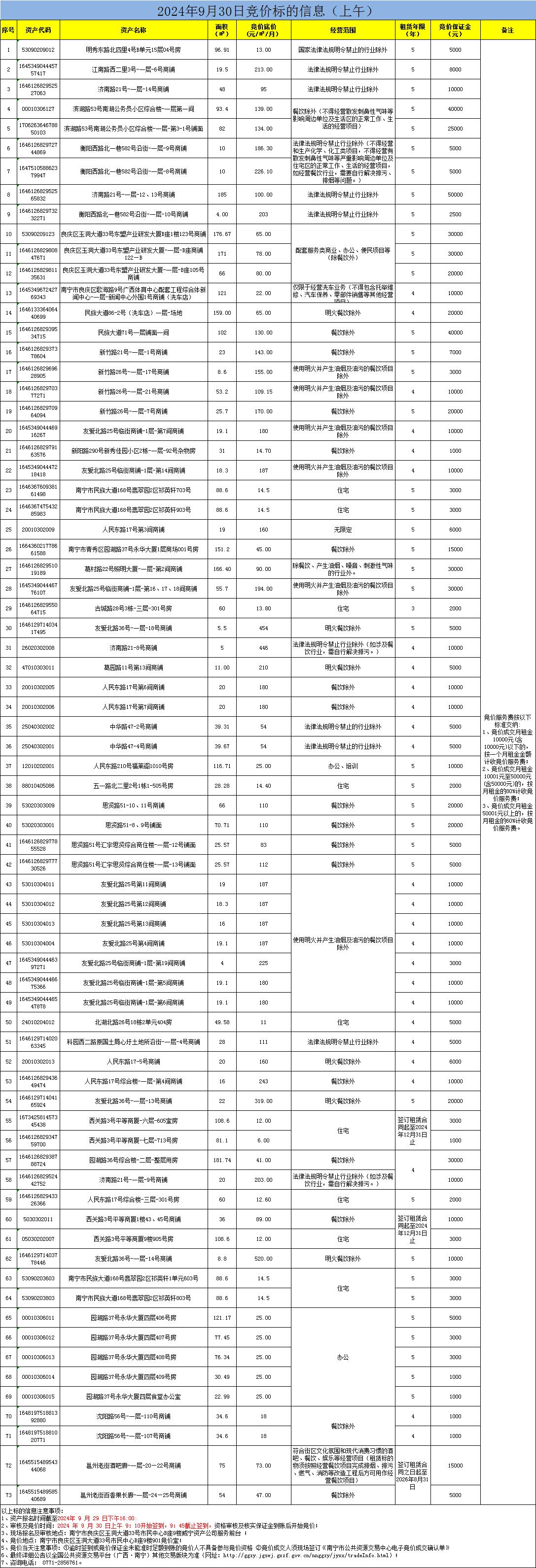 2024年9月30日競價標(biāo)的信息(現(xiàn)場競價)
