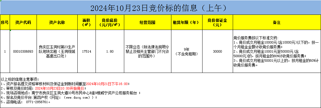 2024年10月23日競價標(biāo)的信息(線上競價)
