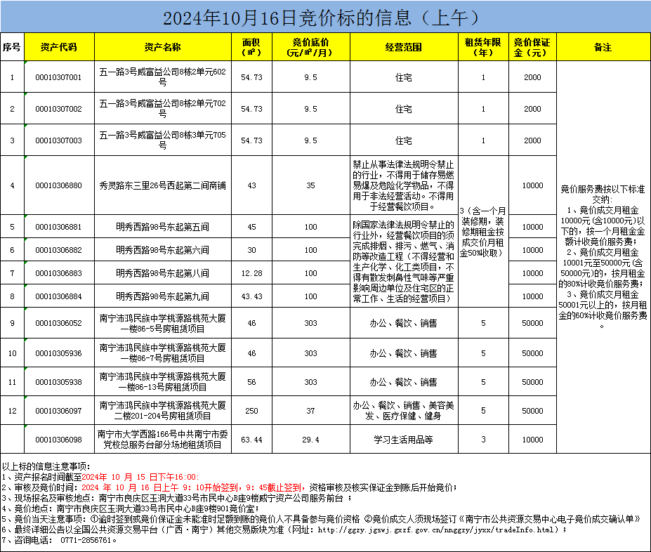 2024年10月16日競價標的信息(現(xiàn)場競價)