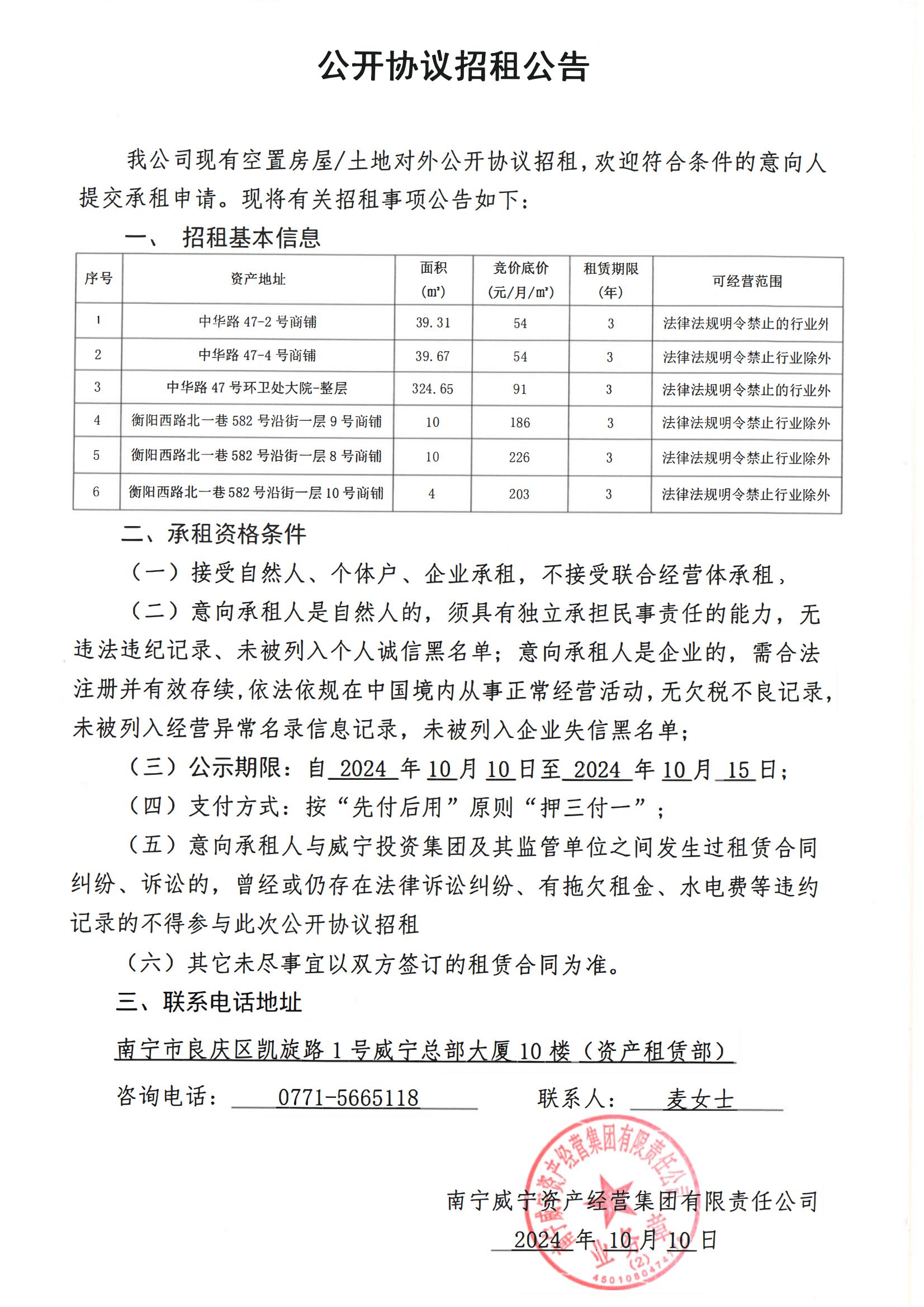 中華路47號及衡陽西路北一巷582號等資產(chǎn)公開協(xié)議出租公告