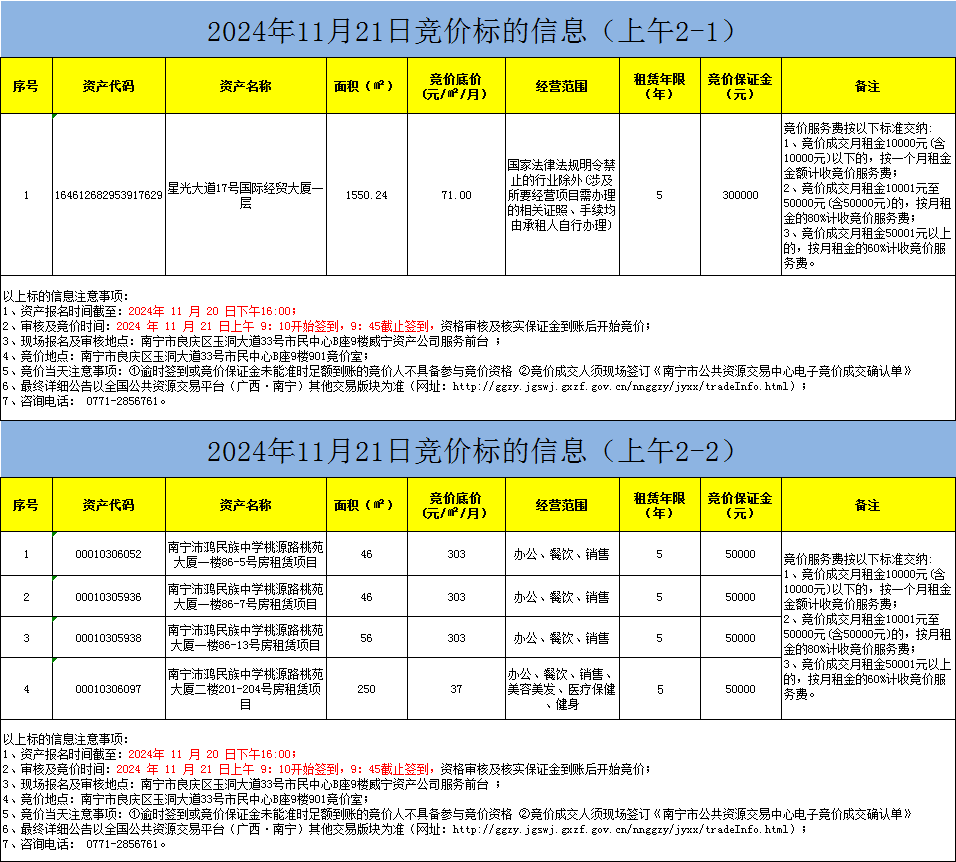 2024年11月21日競(jìng)價(jià)標(biāo)的信息(現(xiàn)場(chǎng)競(jìng)價(jià))
