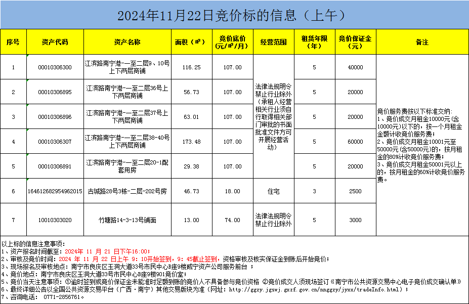 2024年11月22日競(jìng)價(jià)標(biāo)的信息(現(xiàn)場(chǎng)競(jìng)價(jià))
