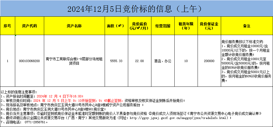 2024年12月5日競價標的信息(現(xiàn)場競價)