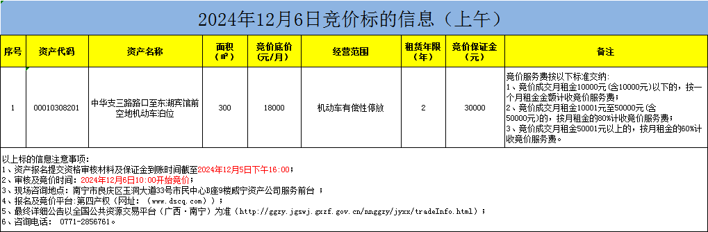 2024年12月6日競(jìng)價(jià)標(biāo)的信息(線上競(jìng)價(jià))