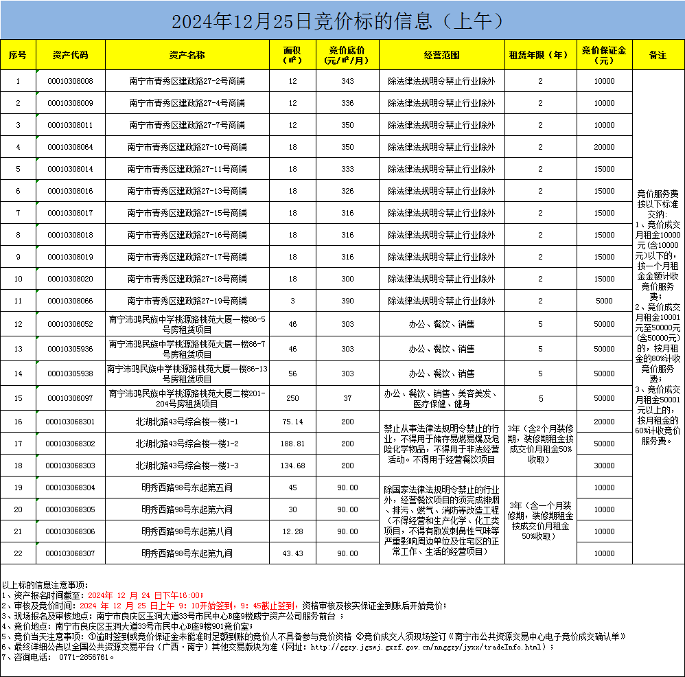 2024年12月25日競(jìng)價(jià)標(biāo)的信息(現(xiàn)場(chǎng)競(jìng)價(jià))
