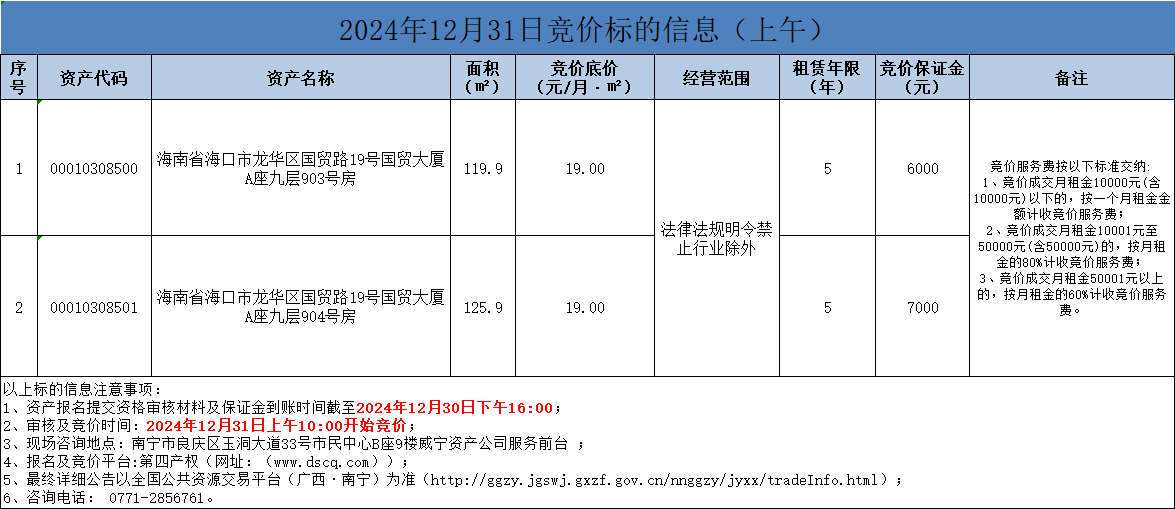2024年12月31日競價標的信息(線上競價)