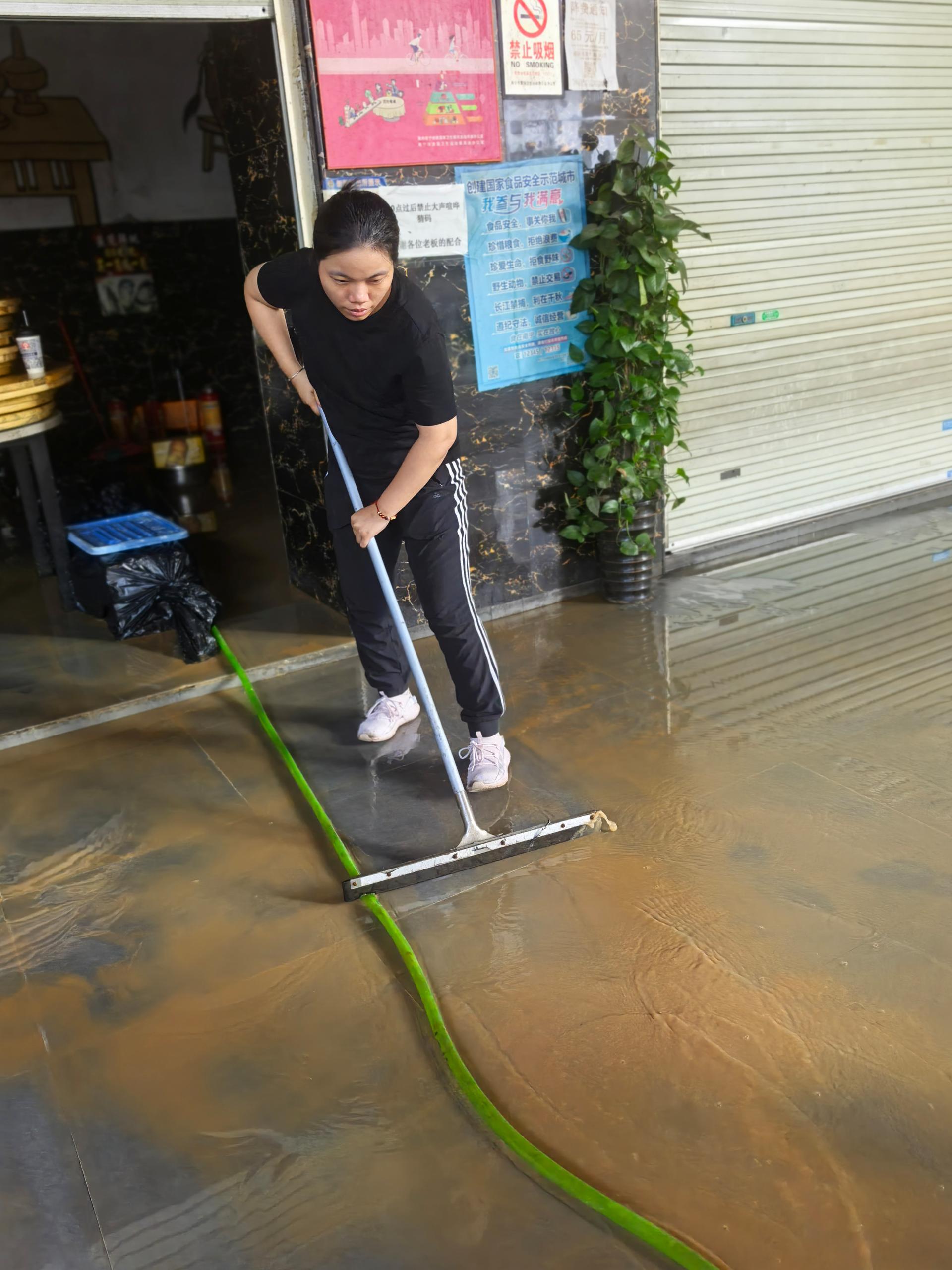 “洪水來(lái)勢(shì)洶洶,一定要保障好商戶的安全,按照預(yù)案成立防汛應(yīng)急小組,落實(shí)人員排班和調(diào)度,做到24小時(shí)堅(jiān)守!”險(xiǎn)情發(fā)生后,公司立即啟動(dòng)應(yīng)急預(yù)案,迅速下達(dá)“以最快的速度集中力量全面應(yīng)戰(zhàn),全力以赴打贏防汛抗洪這場(chǎng)硬仗!”的決戰(zhàn)指令。由公司資產(chǎn)管理部、資產(chǎn)租賃部和安全管理部共計(jì)23人組成的防汛應(yīng)急小組迅速集結(jié)完畢,第一時(shí)間趕赴現(xiàn)場(chǎng)排查隱患點(diǎn),協(xié)助經(jīng)營(yíng)戶處置現(xiàn)場(chǎng)積水、搬離貨品。