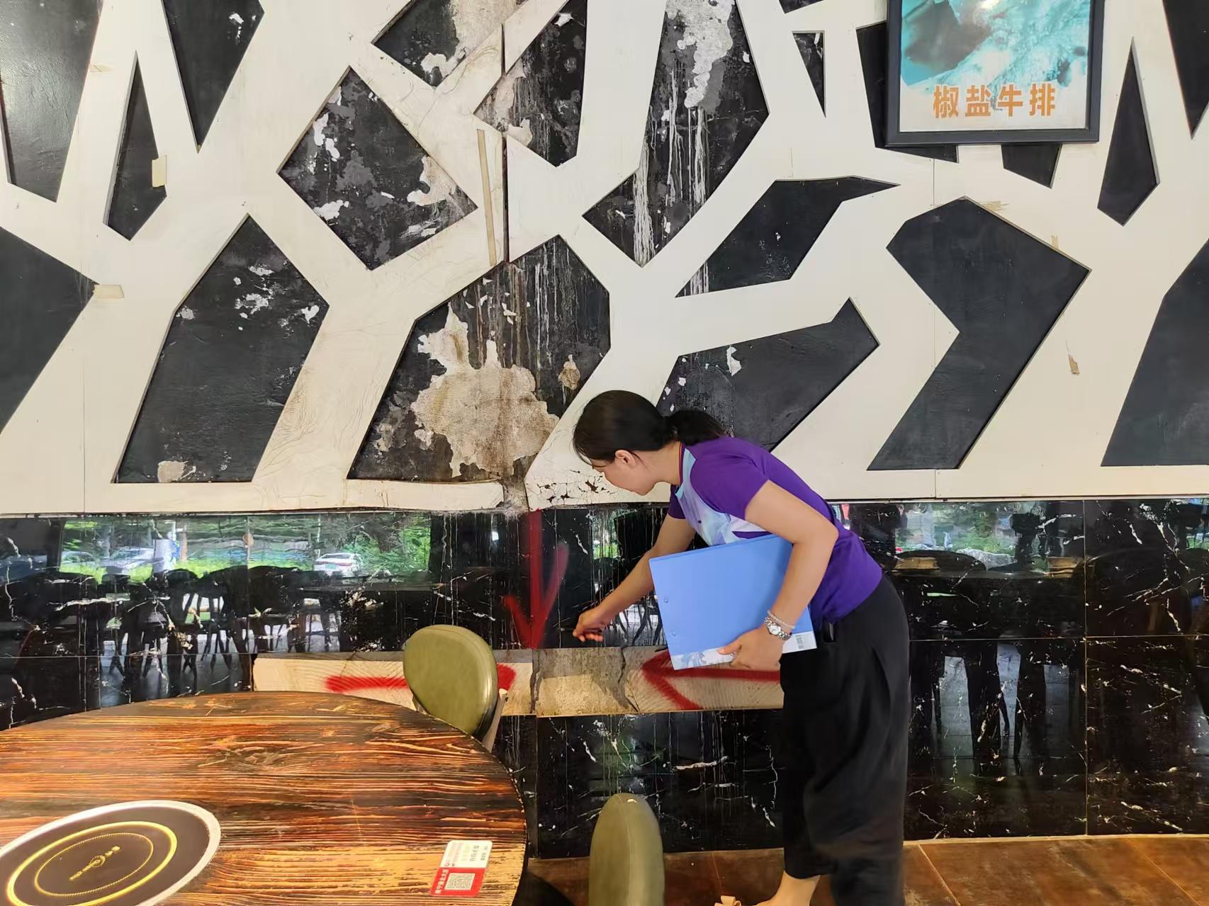 由于堤壩引起的墻面撐裂等系列問(wèn)題,為確保安全,南寧港在抗洪過(guò)程中實(shí)施了全面斷電措施。洪水褪去后,南寧港在經(jīng)過(guò)全面排查確認(rèn)后逐步恢復(fù)用電?!皠倓偦謴?fù)用電,您要檢查好線路是否正常,如果出現(xiàn)問(wèn)題立即聯(lián)系我們?!惫痉姥磻?yīng)急小組負(fù)責(zé)電路管理的韋香淑第一時(shí)間電話通知斷電區(qū)域的經(jīng)營(yíng)戶恢復(fù)用電的消息,同時(shí)針對(duì)被水浸泡過(guò)的線路及電器設(shè)備開(kāi)展檢查維修,并囑咐用電安全,還積極聯(lián)系邕江防洪排澇工程管理中心進(jìn)行鋪面受損維修,協(xié)助租戶清理鋪面垃圾雜物、污水,以便盡快恢復(fù)營(yíng)業(yè)。