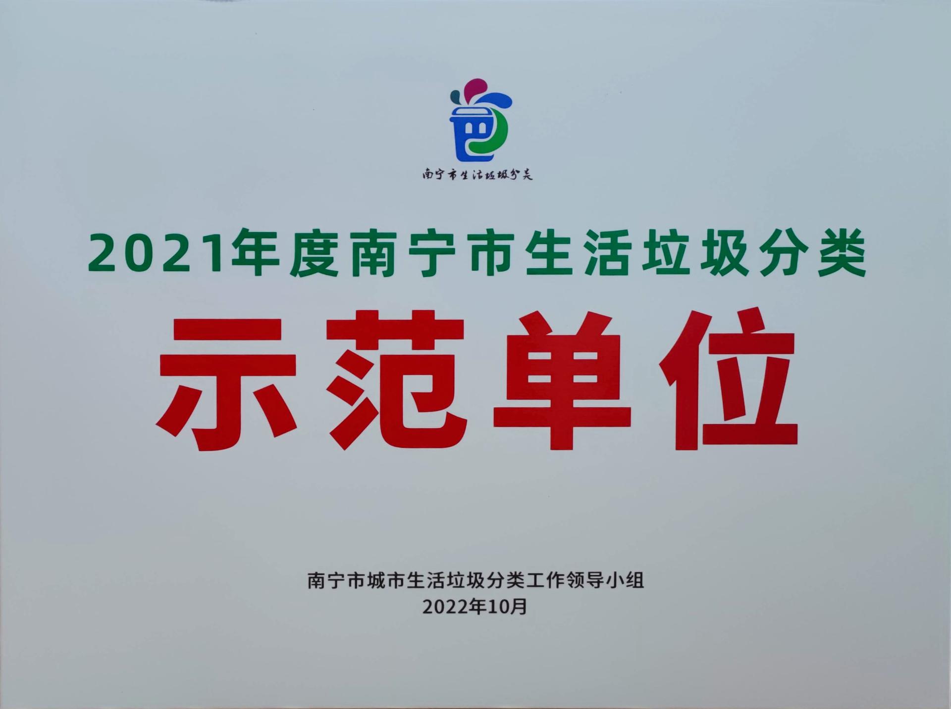 銀河大酒店獲評為“2021年度南寧市生活垃圾分類示范單位”