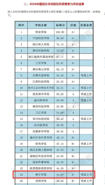 南寧學院科研競爭力躋身2020中國民辦本科院校25強