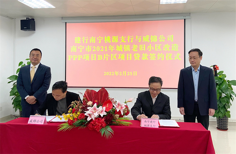 2022年2月25日,南寧市2021年城鎮(zhèn)老舊小區(qū)改造PPP項目B片區(qū)項目獲中國建設(shè)銀行南寧桃源支行授信1.47億元,用于保障項目建設(shè)。