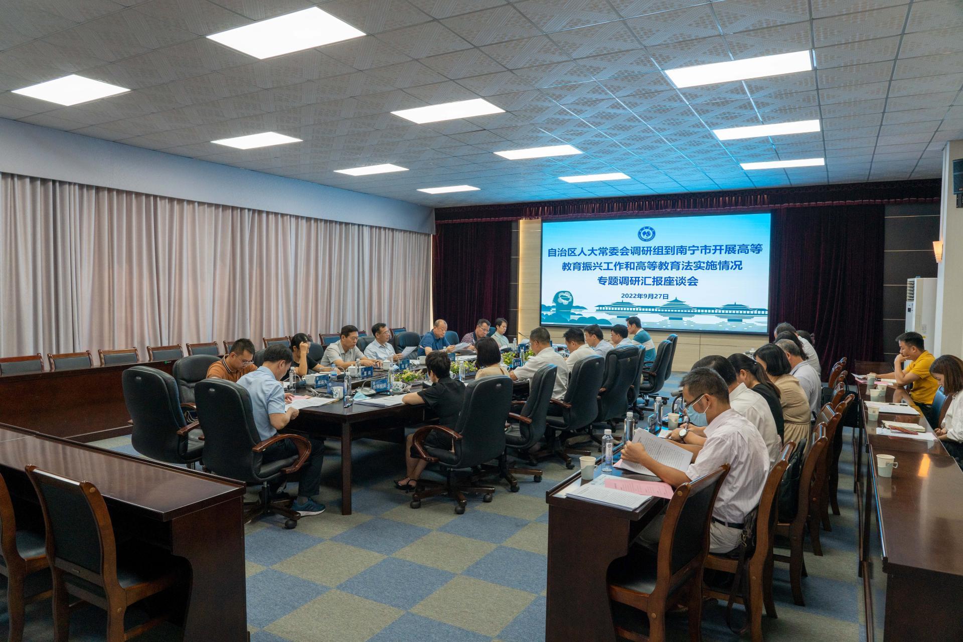自治區(qū)人大常委會專題調(diào)研南寧市開展高等教育振興工作和高等教育法實施情況座談會在學校召開