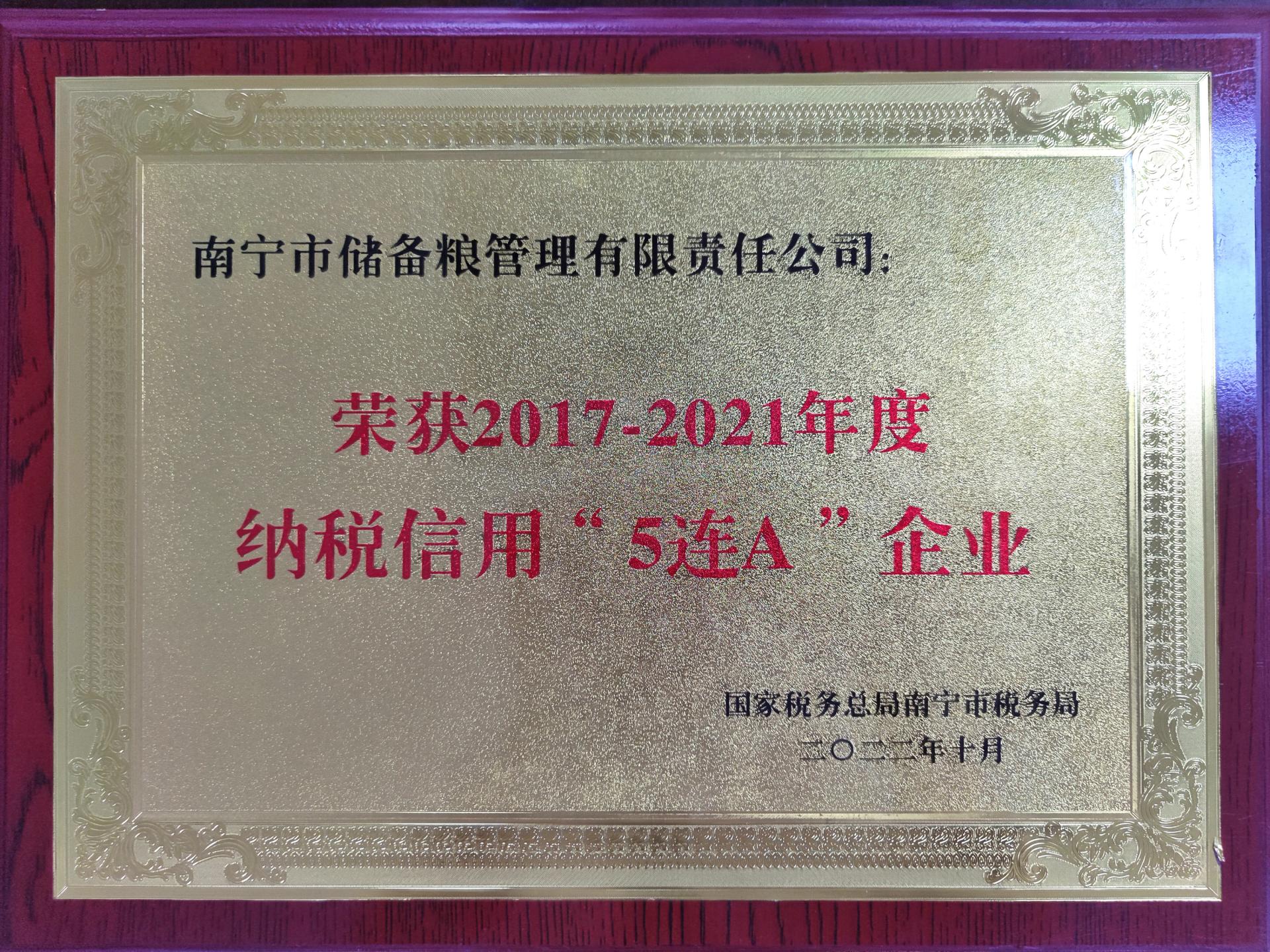 喜報!儲備糧公司榮獲納稅信用“5連A”企業(yè)榮譽