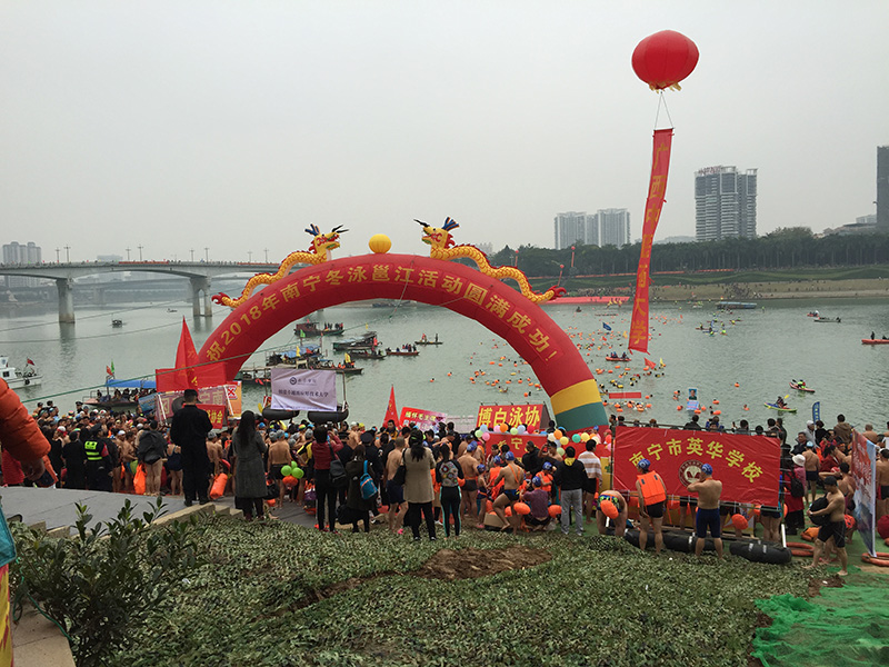 2018年元旦當(dāng)天,在邕江北岸暢游閣新建冬泳碼頭舉行2018年南寧冬泳邕江活動(dòng)。近4000名冬泳愛好者們用橫渡邕江的方式,紀(jì)念偉大領(lǐng)袖毛澤東同志暢游邕江60周年,慶祝新一年的到來。威寧鄰家股份公司作為活動(dòng)協(xié)辦單位之一,見證了冬泳健兒們樂觀積極的心態(tài)和不畏艱難的勇氣。 本次活動(dòng)共有3900位冬泳愛好者參與,由13個(gè)外地市游泳愛好者、自治區(qū)各單位、南寧市各單位、南寧市各游泳協(xié)會(huì)及游泳愛好者組成了四