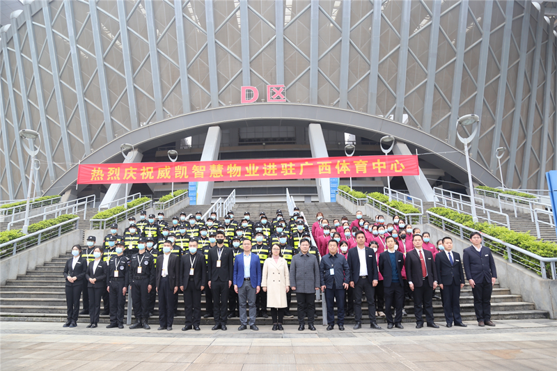 隊(duì)伍展示2022年1月14日上午,威凱智慧物業(yè)正式進(jìn)駐廣西體育中心,從中標(biāo)到入駐僅用了13天,充分顯示了威凱智慧物業(yè)承接項(xiàng)目的實(shí)力與效率。進(jìn)駐儀式在體育中心主體育館D區(qū)前廣場舉行,活動(dòng)現(xiàn)場,威凱智慧物業(yè)公司進(jìn)行了隊(duì)伍、設(shè)備展示,彰顯了威凱物業(yè)高標(biāo)準(zhǔn)、高效率、高品質(zhì)服務(wù)。廣西體育中心總占地2000畝,總建筑面積達(dá)50.8萬平方米。配套包括主體育場、體育館、游泳跳水館以及現(xiàn)代化的網(wǎng)球中心。威凱智慧物業(yè)