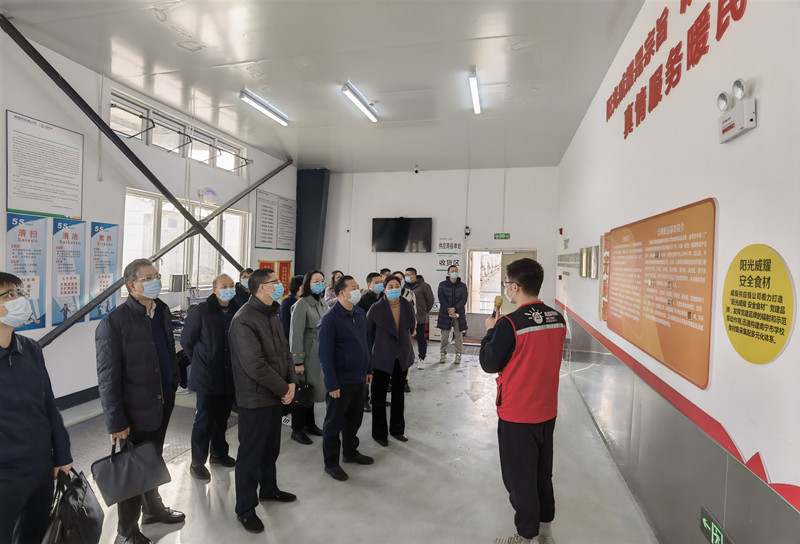 實(shí)地參觀基地生鮮庫現(xiàn)場調(diào)研信息化系統(tǒng)2022年1月11日下午,貴港市人民政府副秘書長覃華寧一行11人到威耀供應(yīng)鏈公司五象配送基地實(shí)地調(diào)研學(xué)校食材集采集配項(xiàng)目,南寧威寧投資集團(tuán)有限責(zé)任公司副總經(jīng)理滕振旗陪同調(diào)研。覃華寧一行實(shí)地參觀了五象配送基地的生鮮庫及冷鏈車場,對(duì)場地投資建設(shè),食材的檢驗(yàn)檢測、入庫、儲(chǔ)存、出庫、分揀、配送、信息化系統(tǒng)、車輛監(jiān)控等各個(gè)環(huán)節(jié)進(jìn)行全方位的了解,并對(duì)于威耀供應(yīng)鏈公司始終秉承