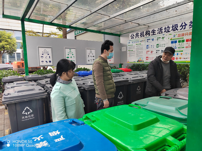 檢查現(xiàn)場2022年1月12日上午,公司副總經(jīng)理李可梅帶隊(duì)到南寧東盟產(chǎn)業(yè)研發(fā)大廈開展垃圾分類工作實(shí)地督導(dǎo)檢查。李可梅一行先后查看垃圾分類宣傳工作、垃圾桶配備、垃圾分類投放、收集、運(yùn)輸?shù)壤诸惞ぷ鏖_展情況,并對(duì)下一步開展垃圾分類工作提出具體要求。李可梅要求,在下一步工作中,要加大宣傳教育力度,全力推動(dòng)垃圾分類工作扎實(shí)開展,通過有效的督促引導(dǎo),讓更多人行動(dòng)起來,培養(yǎng)垃圾分類的好習(xí)慣;要堅(jiān)持黨建引領(lǐng),從