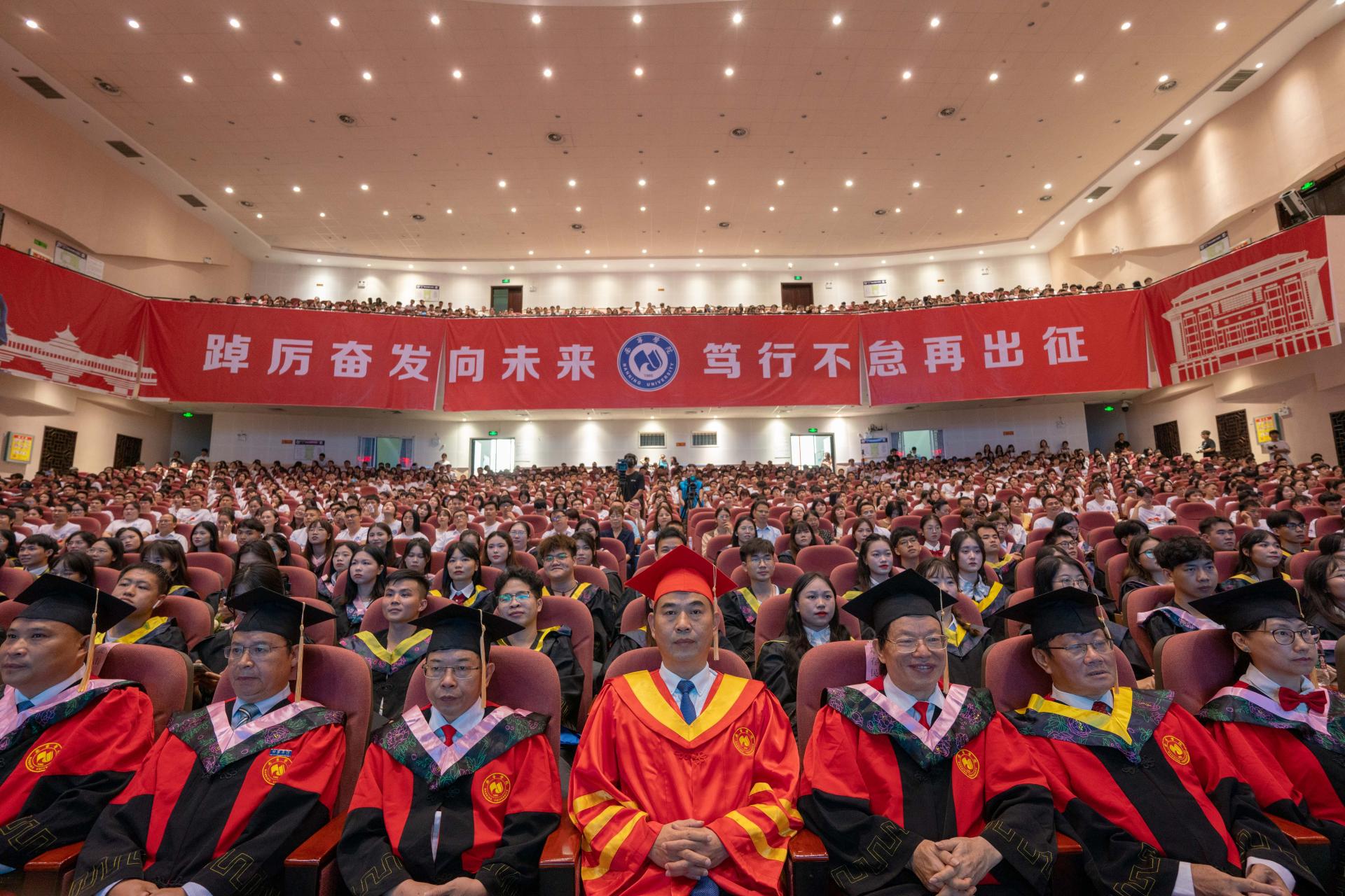 火紅六月,青春飛揚。2022年6月24日上午,2022屆畢業(yè)生畢業(yè)典禮暨學(xué)士學(xué)位授予儀式在學(xué)校演藝中心隆重舉行,學(xué)校黨委書記劉彪,校長李棟學(xué),校黨委副書記、紀(jì)委書記覃存民,副校長陳雄章、李陶深、龔擊,財務(wù)總監(jiān)李凌、學(xué)校辦公室主任陳鐵及學(xué)校學(xué)位評定委員會委員、2022屆畢業(yè)生家長代表、畢業(yè)生代表、教師代表和全體學(xué)工人員歡聚一堂,慶祝2022屆畢業(yè)生圓滿完成學(xué)業(yè),歡...