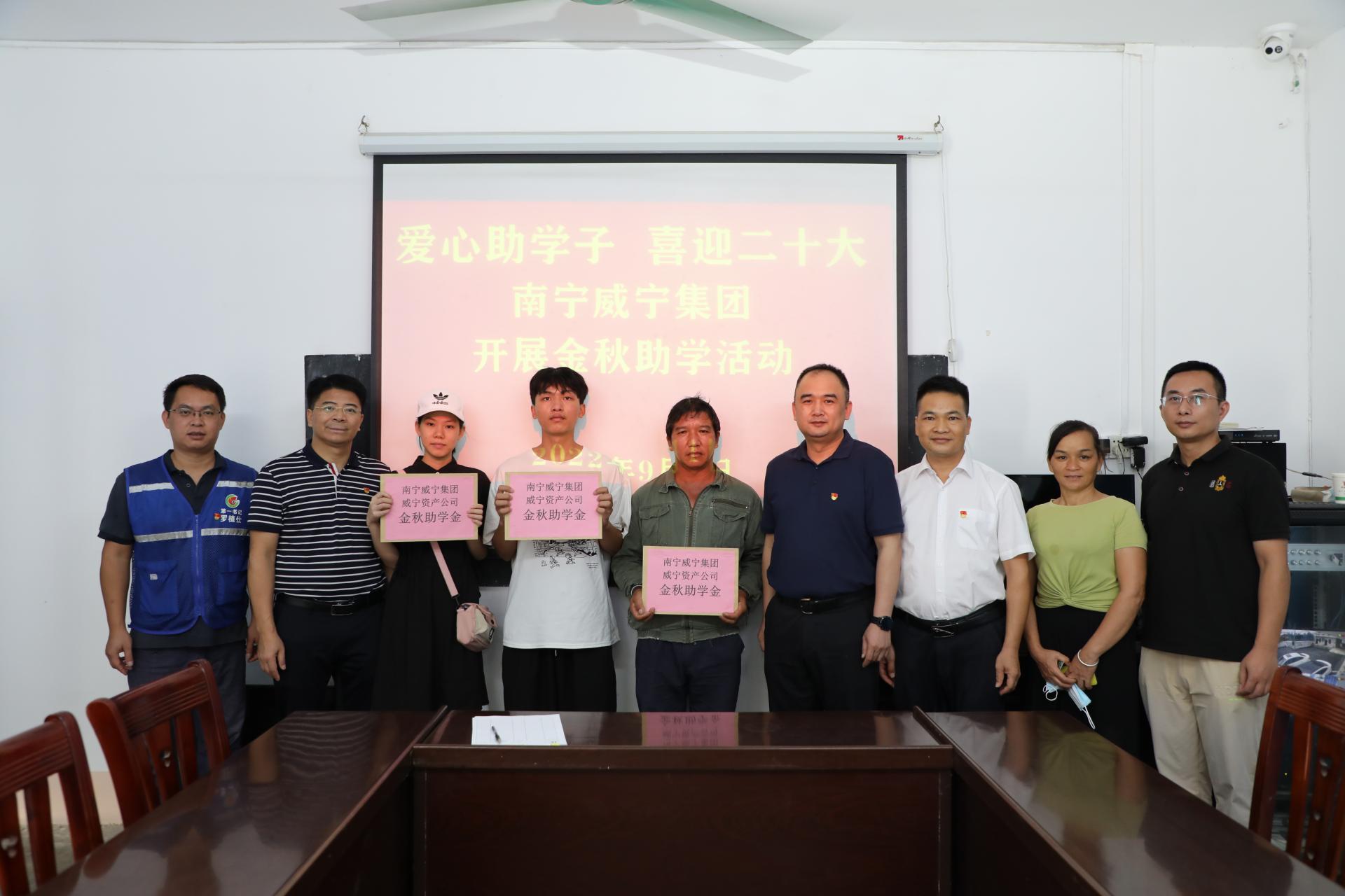 秋來佳馨,碩果豐艷,圓夢(mèng)前行。9月1日上午,南寧威寧集團(tuán)副總經(jīng)理韋義勇帶隊(duì)前往江南區(qū)江西鎮(zhèn)同良村開展2022年金秋助學(xué)活動(dòng),通過座談會(huì)和入戶看望威寧資產(chǎn)公司幫扶村的困難學(xué)子,并送上金秋助學(xué)金。座談會(huì)上,韋義勇對(duì)金榜題名,即將邁進(jìn)高等學(xué)府、開啟大學(xué)時(shí)光的各位學(xué)子們表示熱烈的祝賀,向辛勤培育孩子成長(zhǎng)成才的各位家長(zhǎng)表示由衷的佩服。韋義勇指出,青年...