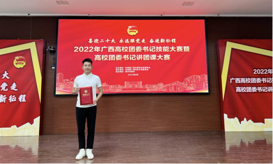 9月29日,2022年廣西高校團(tuán)委書記技能大賽暨高校團(tuán)委書記講團(tuán)課大賽在柳州市團(tuán)校順利舉行。校團(tuán)委副書記尤兆智老師代表學(xué)校參加本次大賽,并在大賽中以排名第四的好成績(jī)榮獲大賽“二等獎(jiǎng)”。本次大賽分為本科組、高職高專組2個(gè)類別,參賽選手結(jié)合自身實(shí)際,圍繞習(xí)近平新時(shí)代中國(guó)特色社會(huì)主義思想、社會(huì)主義核心價(jià)值觀教育、中國(guó)共產(chǎn)黨史、新中國(guó)史、改革開放史、社會(huì)主義發(fā)展史、團(tuán)章、團(tuán)史、團(tuán)務(wù)知識(shí)和共青團(tuán)工作等...
