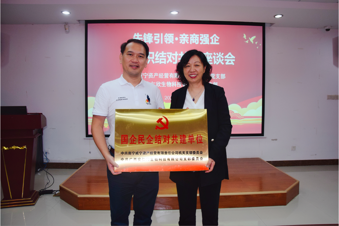 威寧資產(chǎn)公司黨委書記、董事長譚全強向安仁欣公司贈送結(jié)隊共建牌匾威寧資產(chǎn)公司機(jī)關(guān)支部黨員參觀安仁欣公司實驗室2020年10月28日下午,南寧威寧資產(chǎn)經(jīng)營有限責(zé)任公司與廣西安仁欣生物科技有限公司舉行了“先鋒引領(lǐng)·親商強企”黨組織結(jié)對共建簽約儀式。兩家單位的負(fù)責(zé)人現(xiàn)場簽署了《黨組織結(jié)隊共建意向書》,互贈共建牌匾,承諾組織共建、先鋒共創(chuàng)、資源共享、發(fā)展共謀,努力實現(xiàn)黨建、業(yè)務(wù)“雙促進(jìn)”。威寧資產(chǎn)公司還向安
