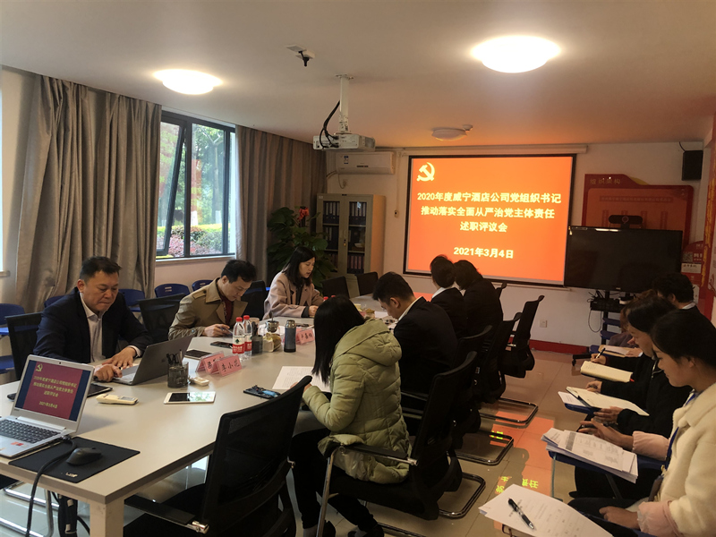 會議現(xiàn)場2021年3月4日上午,威寧酒店公司召開2020年度基層黨組織書記落實全面從嚴治黨主體責任述職評議會,集團副總經(jīng)理、威寧酒店公司黨委書記朱海主持會議,并作點評發(fā)言和總結(jié)講話。會上,威寧酒店公司黨委下屬4個黨支部書記結(jié)合工作實際,圍繞2020年度黨建、黨風廉政建設和意識形態(tài)工作取得的成績、存在的問題和下一步工作措施進行現(xiàn)場述職。朱海對現(xiàn)場述職的支部書記進行了逐一點評,肯定了工作成效,提出了突