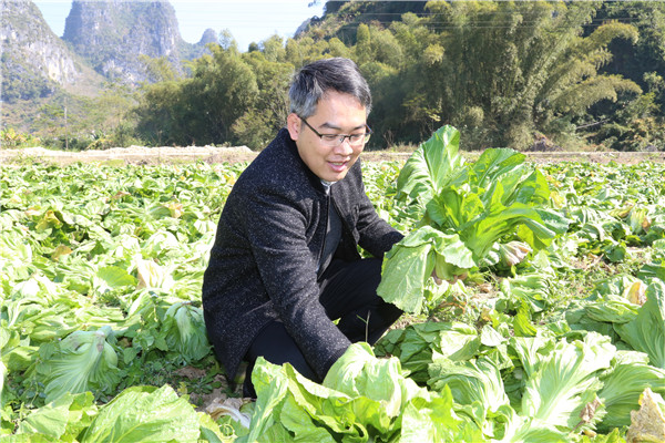 鄧江寧種植芥菜鄧江寧(左一)為云靈村爭取芥菜種植配套支持資金農(nóng)民種菜,國企搭橋,農(nóng)業(yè)公司提供技術(shù)指導和收購,在上林縣云靈村有一個“西燕云靈”注冊商標,小小的一棵芥菜,正朝著產(chǎn)業(yè)化、標準化發(fā)展。這是來自威寧房地產(chǎn)公司扶貧工作隊員——鄧江寧的好點子,他為了研究推廣產(chǎn)業(yè)扶貧新路,跑遍了云靈村的田間地頭,同事們都開玩笑稱他為“芥菜種植專家”。就是這樣一位半路出家的“專家”,讓云靈村的芥菜扶貧之路越拓越寬。