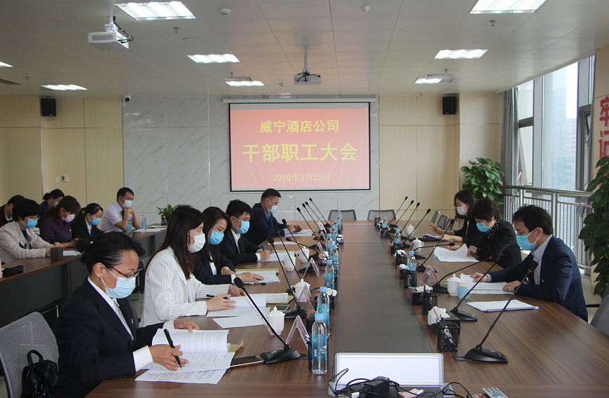 2020年3月25日,威寧酒店公司召開干部職工大會(huì),對公司領(lǐng)導(dǎo)班子和領(lǐng)導(dǎo)人員2019年度工作進(jìn)行考核。集團(tuán)黨委副書記、總經(jīng)理劉巧瑛到會(huì)指導(dǎo)。