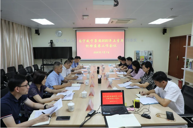 總結(jié)回顧促提升,明確方向再發(fā)力。7月7日下午,南寧威寧集團(tuán)紀(jì)委召開2020年上半年紀(jì)檢監(jiān)察工作會議,學(xué)習(xí)貫徹監(jiān)督執(zhí)紀(jì)相關(guān)文件精神,總結(jié)回顧上半年紀(jì)檢監(jiān)察工作,深入查擺問題、剖析不足,為聚力下半年紀(jì)檢監(jiān)察工作提升提檔再動員再部署。