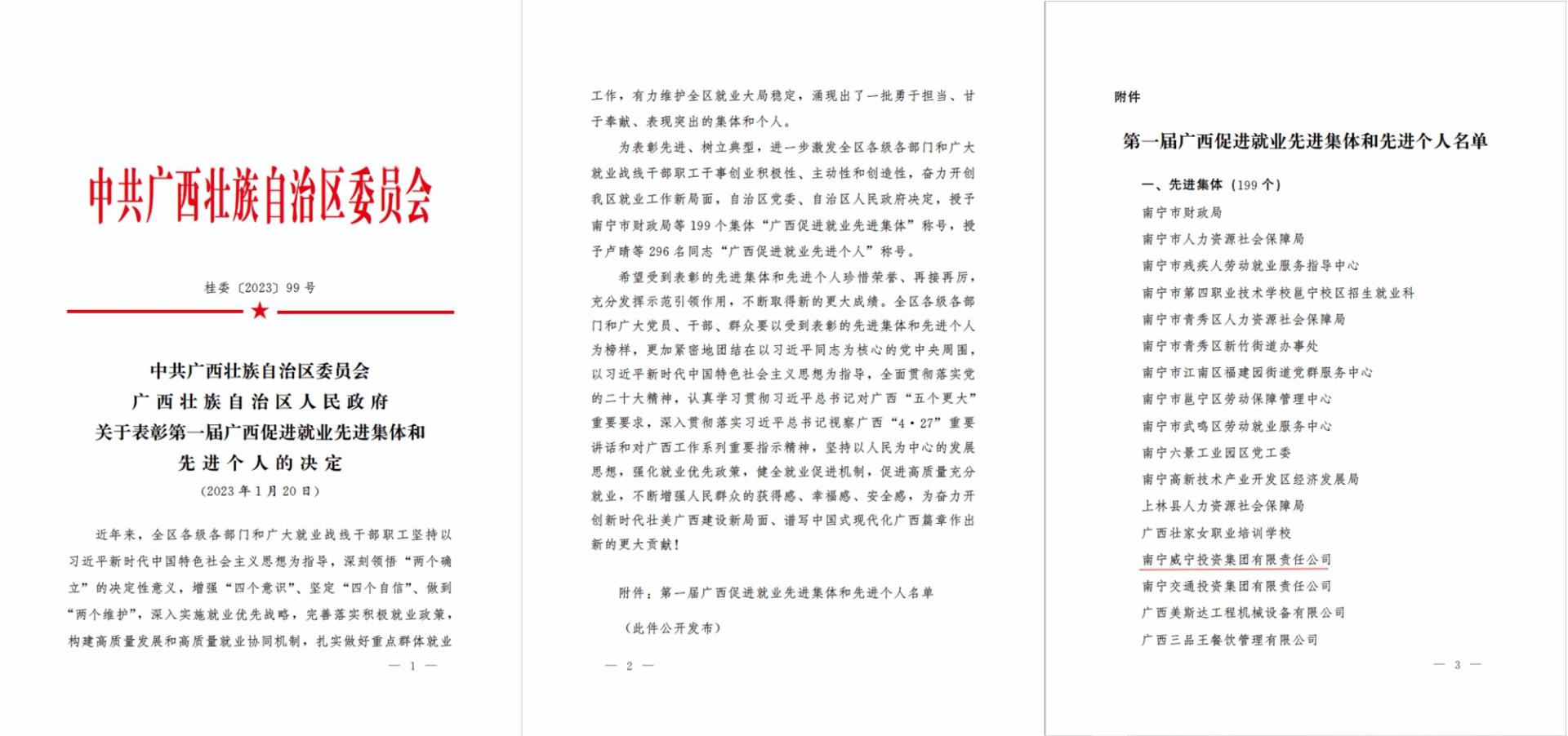 南寧威寧集團(tuán)榮獲“廣西促進(jìn)就業(yè)先進(jìn)集體”榮譽(yù)稱號(hào)