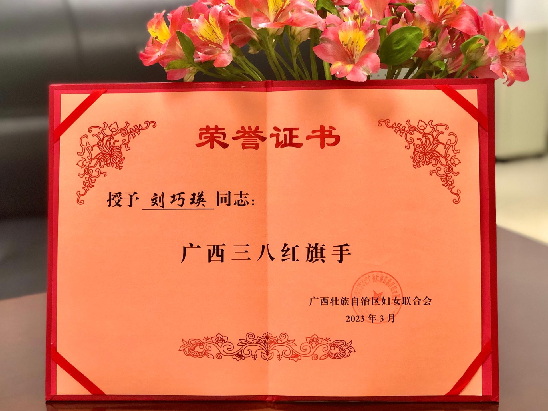 劉巧瑛榮獲“廣西三八紅旗手”稱號(hào)