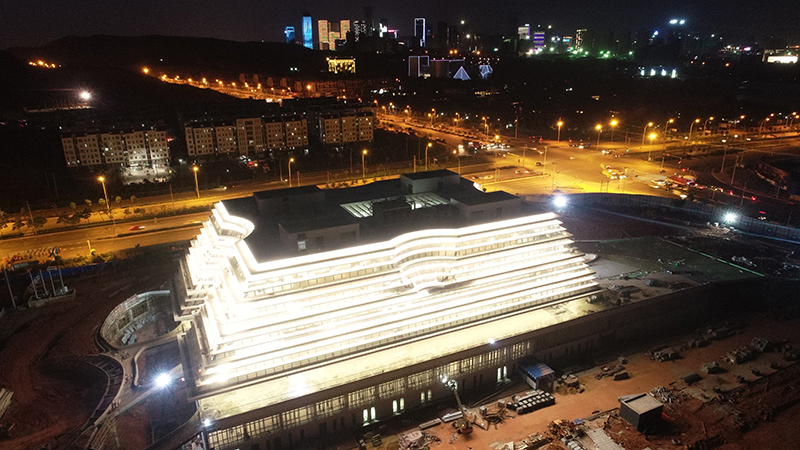 在淡白色燈光籠罩下,一座外形層層交疊的建筑物,好似一本正在被翻閱的巨型“圖書”,在夜幕中格外引人注目。5月22日晚,位于玉洞大道與玉象路西南面的南寧市圖書館新館首次亮燈了。