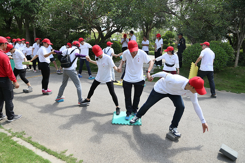 炎炎夏日, 驕陽似火,在五象山莊8號樓大草坪上響起陣陣掌聲,“‘閃閃紅星,不忘初心’我們是閃亮隊;‘得力得力,無往不力’我們是得力隊………”身穿白色上衣頭戴紅色帽子的黨員、發(fā)展對象、積極整齊地排成5個橫隊,在教練的指揮下,分別進行了團隊展示,氣氛熱烈而歡快。